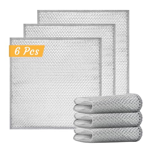 CINDALOG - 6 قطع قماش اطباق سلكية غير قابلة للخدش من سيندالوج، قماش شبكي فضي لتنظيف الاطباق - اقمشة تنظيف معدنية متعددة الاغراض للمطبخ والاواني والمقالي واسطح الطاولة، قماش تنظيف شبكي سلكي قابل لاعادة الاستخدام