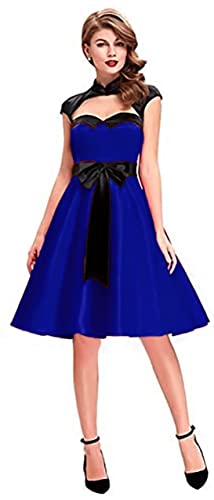 Generic - فستان سندريلا ازرق مع حزام ساتان اسود للنساء