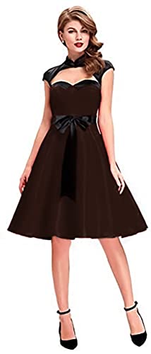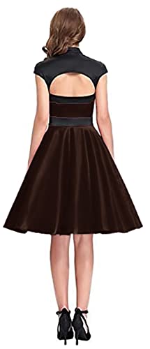 Generic - فستان بني نساءى قصة سيندرلا مع حزام ستان اسود للنساء