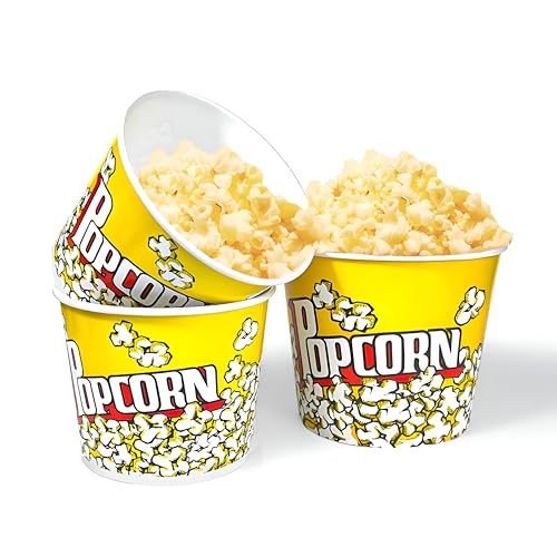 Generic - موزعات الوجبات الخفيفة من سينما - مجموعة حاويات ورقية صفراء كبيرة للفشار والوجبات الخفيفة، تصميم جذاب مع طلاء امن على الطعام، خفيفة الوزن ومحمولة، خيارات مقاسات متعددة