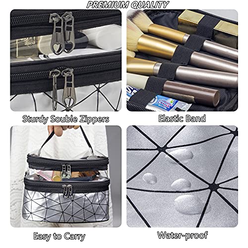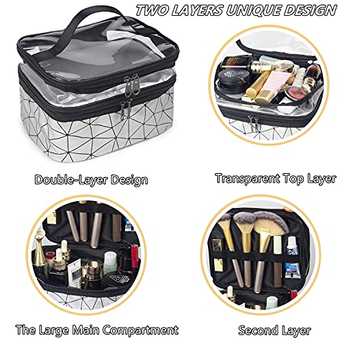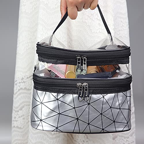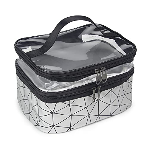Cinlitek - شنطة مستحضرات تجميل محمولة مزدوجة الطبقات، شنطة مكياج كبيرة للسفر، شنط مستحضرات تجميل شفافة للسفر، شنط أدوات الزينة مقاومة للماء للنساء والبنات للتخييم والكلية - ألوان متنوعة من سينلايت