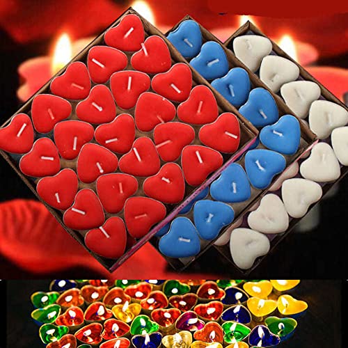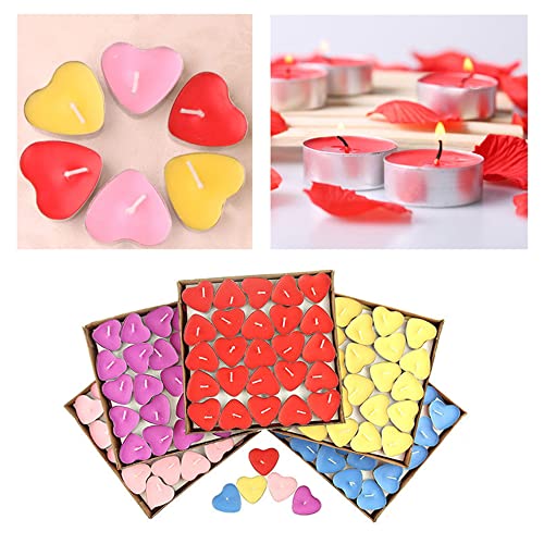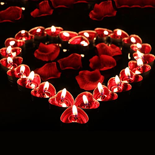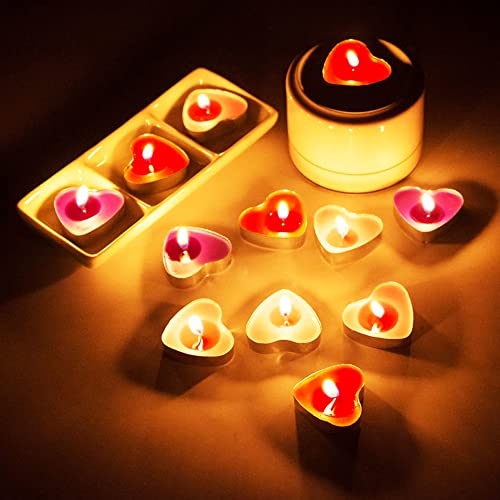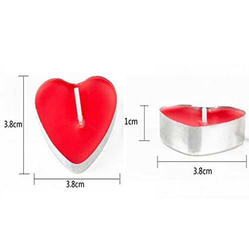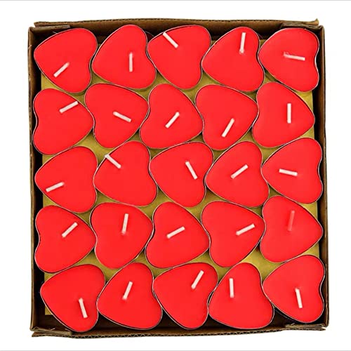 CINY - مجموعة شموع تي لايت صغيرة الحجم بوقت احتراق ساعتين من سيني، شمعة بارافين شكل قلب حب، قطعة رومانسية لحفلات الزفاف بدون دخان، للمنزل والأماكن الخارجية والمطاعم والحفلات، 50 قطعة (أحمر)