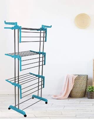 - مثالي لكل منزل حيث يمكن لمنشر تجفيف الملابس هذا حمل حمولة كبيرة من الملابس على قضبان متعددة وأفضل سلالات للاستخدام في البلكونة أيضًا. ستمنح نمط حياتك ومنزلك لمسة إضافية حيث لا داعي للقلق بشأن المسامير الموجودة على الحائط والحبال في المنزل. عجلات في الجزء السفلي لتحريك الرف بشكل مريح. قضبان صلبة عالية الجودة ومتينة يمكنها تحمل وزن الملابس المبتلة الثقيلة. يمكن طيه لسهولة التخزين.
