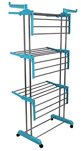 CIPLA PLAST - منشر ملابس منزلي من الفولاذ المقاوم للصدأ، حامل مجفف ملابس قوي وثقيل قابل للطي والتحريك للأرض والبلكونة مع أربع عجلات من سيبلا بلاست، أزرق