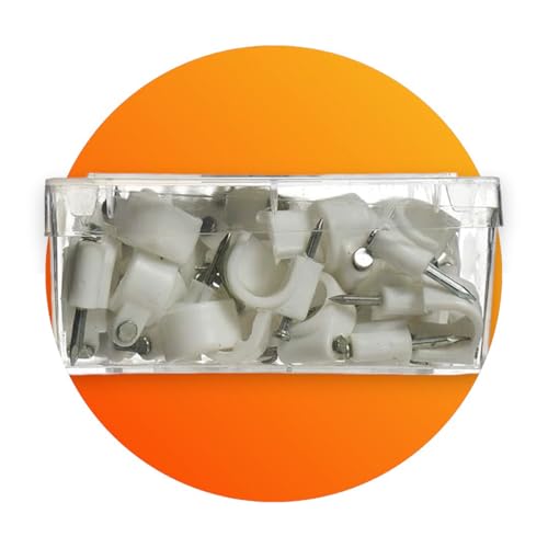 Generic - مشابك اسلاك دائرية 12 ملم (100 قطعة) لادارة الكيبلات RG6 RG59 CAT5 CAT6 RJ45، حامل اسلاك ايثرنت كهربائي للتلفزيون ومكبر الصوت، مشابك مسمار محورية واحدة