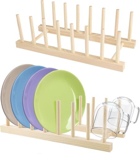 Circle M - رف تجفيف الاطباق وحامل اطباق من خشب البامبو من سيركل ام - عبوة من قطعتين - منظم مصفاة مطبخ عمودي من الخشب الطبيعي
