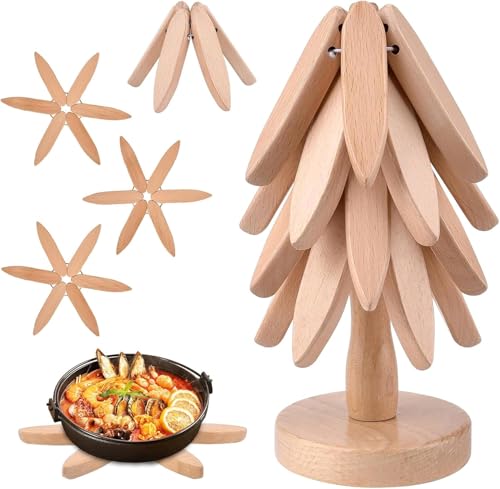 Circle M - قواعد أكواب من خشب الجوز قابلة للطي من سيركل ام، 4 قطع: حوامل طاولة للأواني الساخنة مقاومة للحرارة