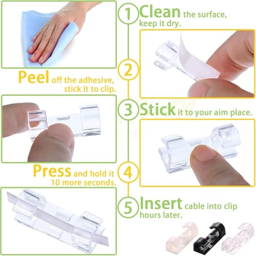 Circle M - مشابك كابلات ذاتية اللصق من سيركل ام مكونة من 40 قطعة: حوامل تنظيم اسلاك اكريليك للمكتب