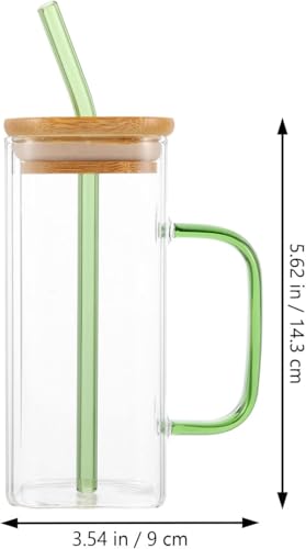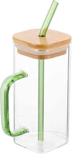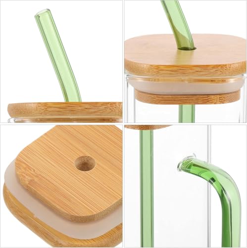 Circle M - طقم اكواب شرب زجاجية مربعة الشكل سعة 400 مل من سيركل ام: اغطية خشبية وماصات للقهوة المثلجة - اخضر