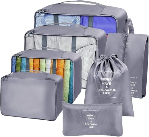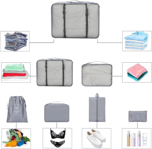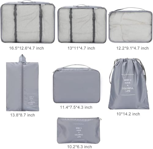 Circle M - مجموعة مكعبات تعبئة للسفر من سيركل ام مكونة من 7 قطع: منظمات امتعة قابلة للطي ومقاومة للماء مع شنطة احذية لتخزين شنط السفر - رمادي