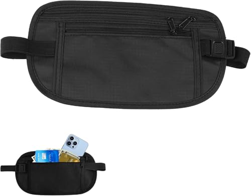 Circle M - حزام نقود اسود مقاوم للماء ومضاد للسرقة من سيركل ام، شنطة سفر بخاصية حجب تحديد الهوية بموجات الراديو