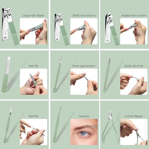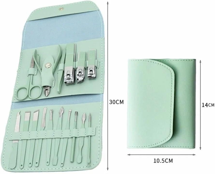 Circle M - مجموعة العناية بالأظافر من سيركل ام، مجموعة احترافية مكونة من 16 قطعة مع مقص أظافر وملقاط وأداة تشذيب الزوائد اللحمية، تصميم للمنزل والسفر، أخضر