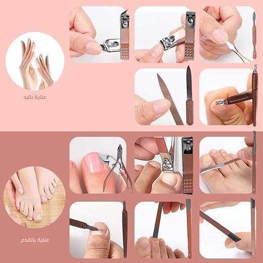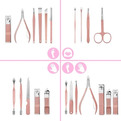 Circle M - مجموعة قصافة اظافر من سيركل ام، مجموعة احترافية مكونة من 16 قطعة مع مقص/ملقط/اداة تشذيب الزوائد اللحمية، شنطة سفر من الستانلس ستيل، زهري