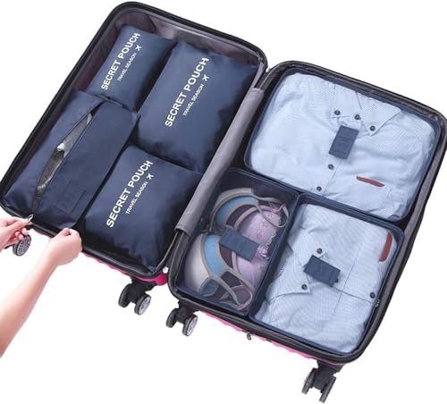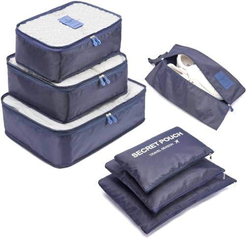Circle M - شنط مكعبة بتصميم مضغوط للسفر من سيركل ام، أزرق غامق، مجموعة من 7 قطع