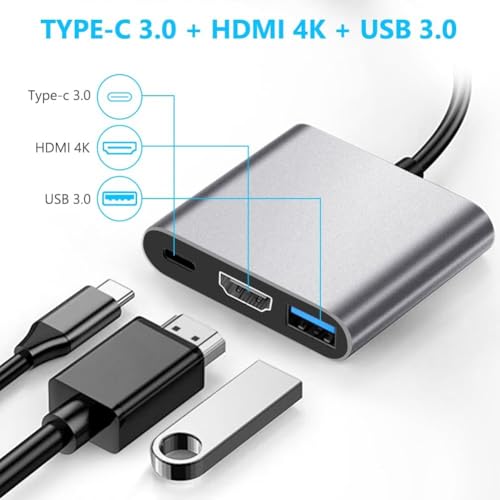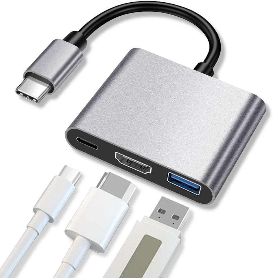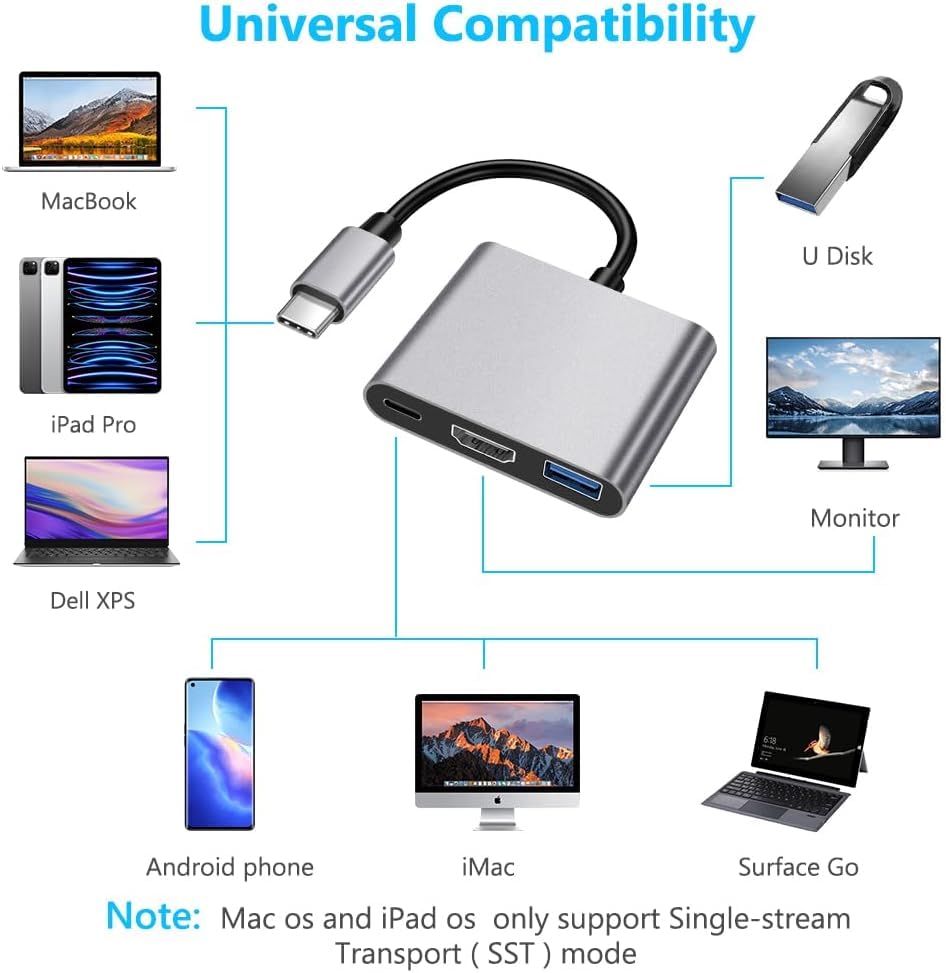 Circle M - محول HDMI USB-C من سيركل ام، تصميم 3 في 1 مع مخرج 4K عند 30 هرتز، USB 3.0، شحن سريع 100 وات، توافق عالمي مع الأجهزة