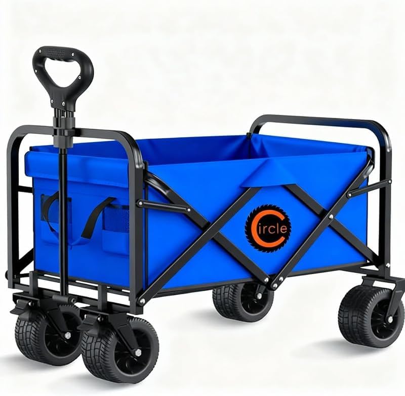 CIRCLE TOOLS - عربة قابلة للطي بعجلات 360 درجة، عربة متعددة الاستخدامات شديدة التحمل وقابلة للطي، قماش مقاوم للماء، مناسبة للشاطئ والتخييم والتسوق والحيوانات الأليفة من سيركل تولز، لون أزرق