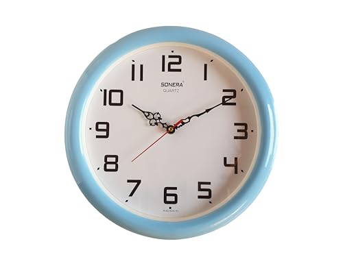 - ساعة حائط دائرية عصرية تناظرية موفرة للبطارية ملف كهربائي كبير اللون سماوي مقاس 30 في 30 سم
