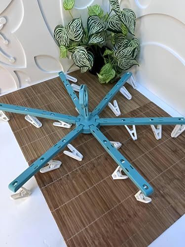 - يتميز منظم الغسيل الدائري هذا بستة أذرع قابلة للتمدد، كل منها مزود بثلاثة مشابك، بإجمالي 18 مشبكًا، وهو مثالي لتعليق الملابس الداخلية أو الجوارب أو ملابس الأطفال بشكل أنيق، مما يضمن الاستخدام والتنظيم الفعال للمساحة.