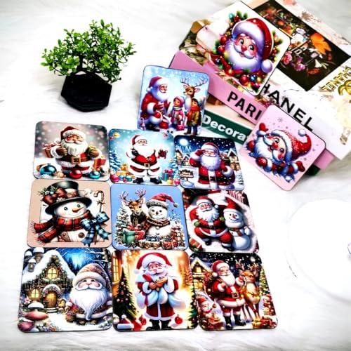 generic - طقم قواعد اكواب خشبية دائرية للكريسماس - 3.75 انش - طقم من 4 قطع