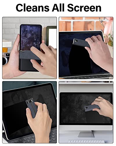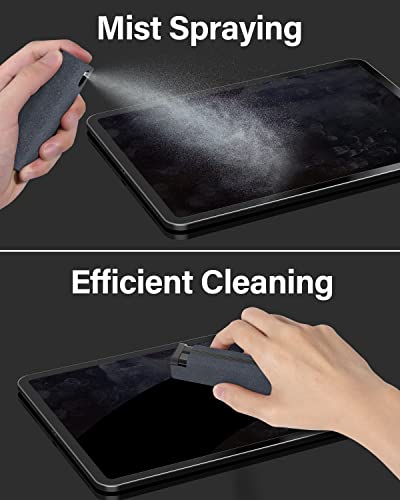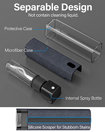 - أداة تنظيف 3 في 1: يتكون منظف الشاشة من جراب واقٍ وغطاء قماشي من المايكروفايبر وزجاجة بخاخ (سائل التنظيف غير متضمن)، بالإضافة إلى شريط سيليكون فريد لإزالة البقع العنيدة بسهولة. ينظف شاشتك بسرعة. ملاحظة: لا تضع السوائل المسببة للتآكل.
