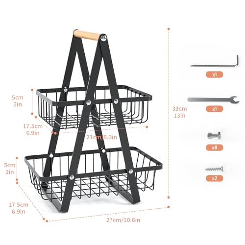 - سعة كبيرة مزدوجة الطبقات: وعاء فاكهة معدني بطبقتين أبعاد 27 × 17 × 29 سم. تصميم مزدوج الطبقات. سعة كبيرة وموفرة للمساحة على المكتب. يضمن تصميم الشبكة المفتوحة نضارة الفاكهة والخضروات.