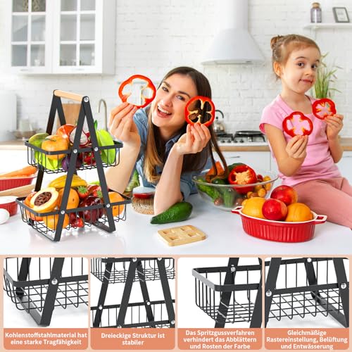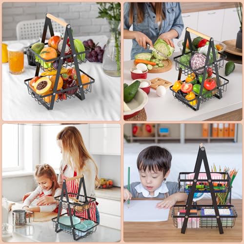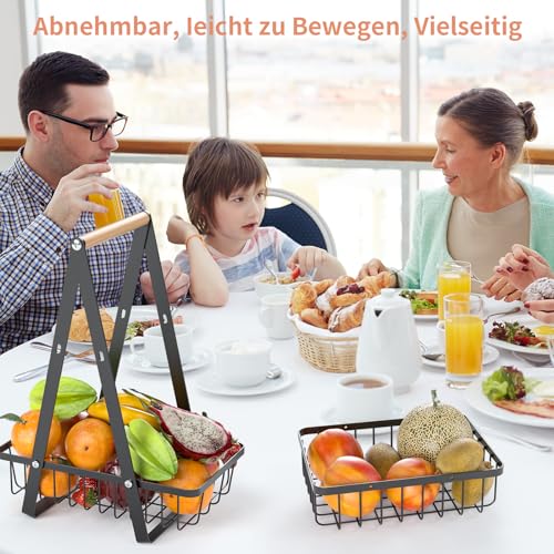 Cisivis - حامل فواكه من سيسيفيس سلة قابلة للازالة وعاء فاكهة معدني بطبقتين للخبز والخضروات والوجبات الخفيفة تخزين للمطبخ أسود
