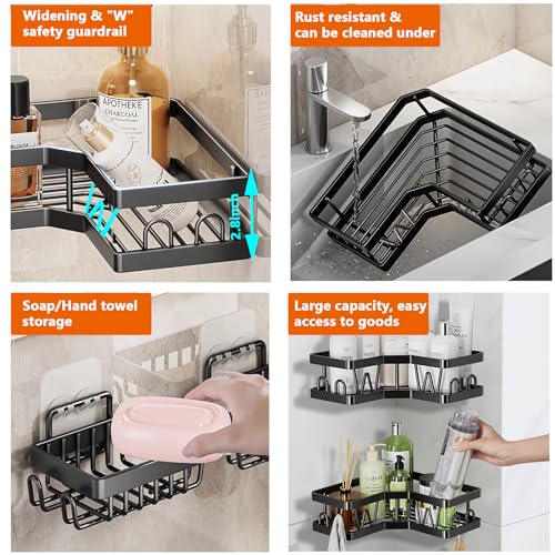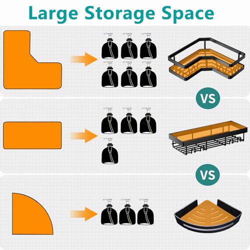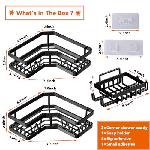 - 😍【خدمة جيدة】يجعل من السهل استغلال مساحة التخزين في الزوايا، رف تخزين الدش اللاصق هذا هو الهدية المثالية لملحقات تخزين الحمام/المطبخ للعائلة أو الأصدقاء. تتميز أرفف الحمام هذه بحواف دائرية لضمان عدم خدش بشرتك. -