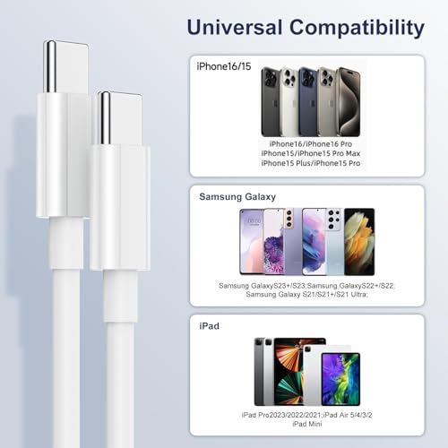 - 【الأجهزة المتوافقة】كيبل USB C إلى USB C متوافق مع ايفون 17/ايفون 16/ايفون 15/ايفون 15 برو ماكس/ايفون 15 ميني/ايفون 15 بلس/ماك بوك برو، ماك بوك اير 13، ماك بوك 12 انش، سلسلة ماك بوك. ايباد برو/ ايباد اير/ ايباد ميني، سلسلة ايباد. جالكسي S23+/S23/S22+/S22/S21/S21+/S21+/S21 الترا/S20/S20+/S20 الترا، والمزيد من أجهزة منفذ USB-C.