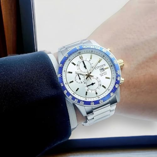 Citizen - سيتيزين ساعة يد كوارتز كرونوغراف للرجال AN3686-53A، قطر 44 ملم، فضي