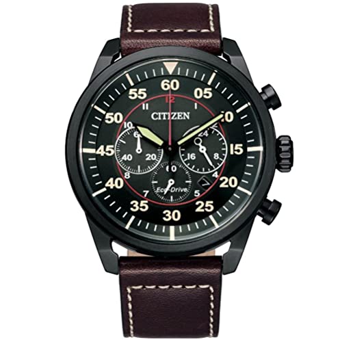 Citizen - ساعة يد رجالي بنظام انالوج كرونوغراف بعقارب وسوار جلد بخياطة مختلفة اللون من سيتيزن، بني