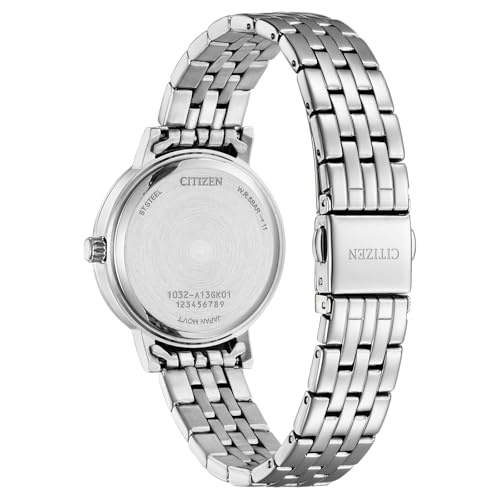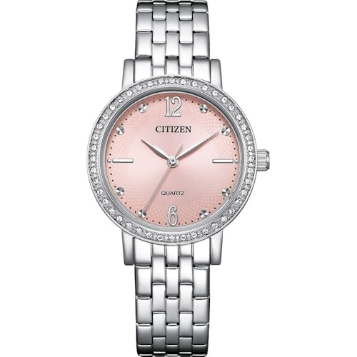 Citizen - ساعة كوارتز كريستال بمينا بلون أخضر للنساء من سيتيزين، موديل EL3100-55X، لون فضي