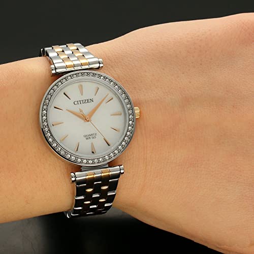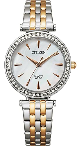 Citizen - ساعة سيتيزن كوارتز كريستال بمينا لولوية بيضاء للسيدات ER0216-59D