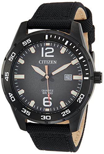 Citizen - ساعة بحركة أوتوماتيكية وعرض انالوج وسوار نايلون للرجال من سيتيزين، لون أسود، موديل BI1045-05E
