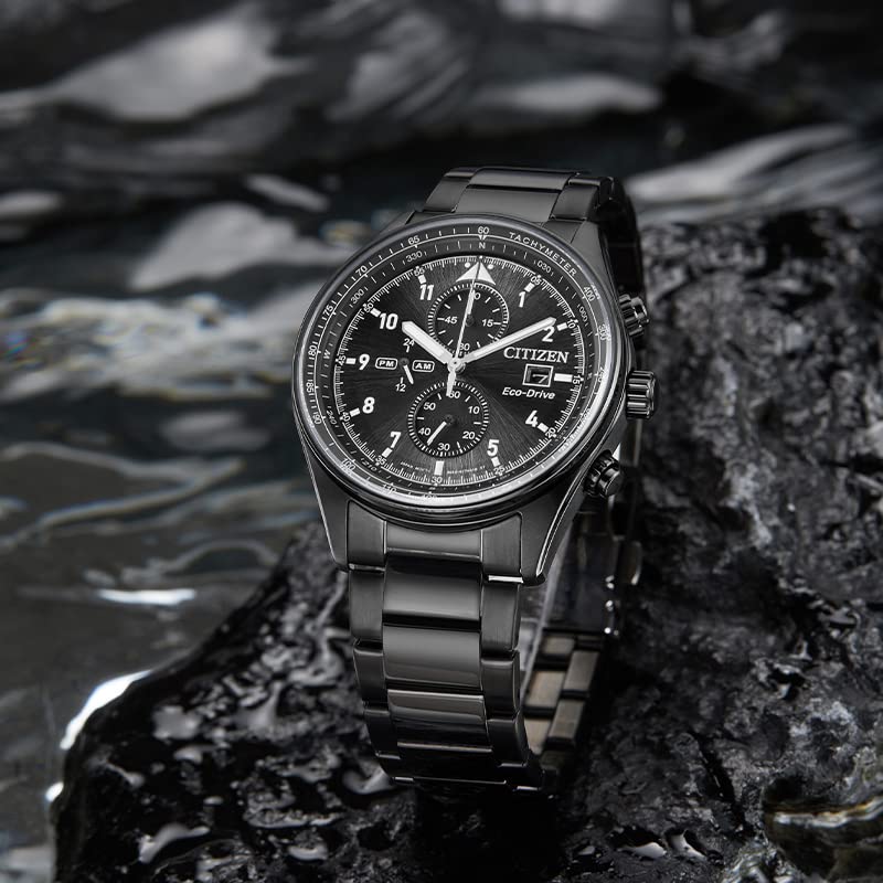 Citizen - ساعة سيتيزن CA0775-87E ايكو- درايف كرونوجراف اسود اي بي ستانلس ستيل للرجال, أسود، انالوج