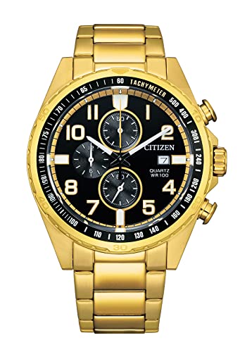 Citizen - ساعة بسوار ستانلس ستيل ذهبي ونظام حركة كوارتز وعرض انالوج للرجال من سيتيزن، موديل AN3652-55E