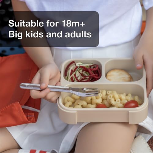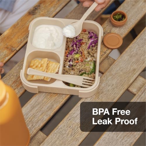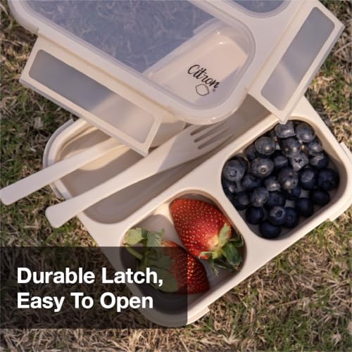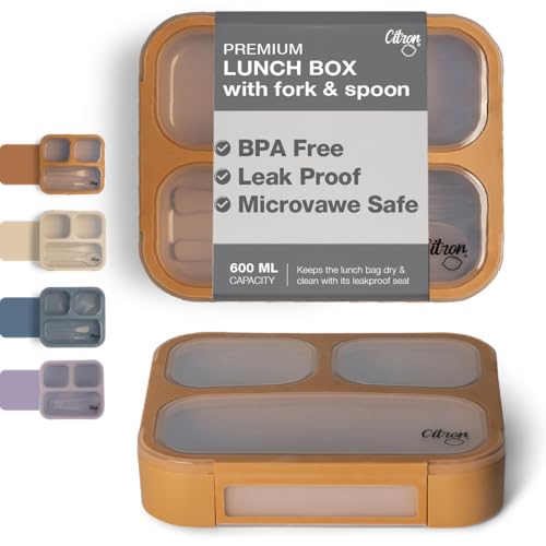 Citron - سيترون - صندوق غداء بينتو مع شوكة وملعقة | حاويات للتحكم في الوجبات الخفيفة والكميات للاطفال والكبار | مانعة للتسرب وخالية من البيسفينول ايه - كراميل