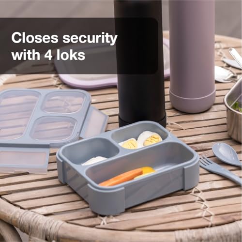 - 3 مساحات تخزين بنمط بنتو: يحتوي صندوق الغداء بينتو الخاص بنا على غطاء شفاف ومصمم بـ 3 مساحات تخزين حتى تتمكن من استيعاب وجبة أكثر توازناً.