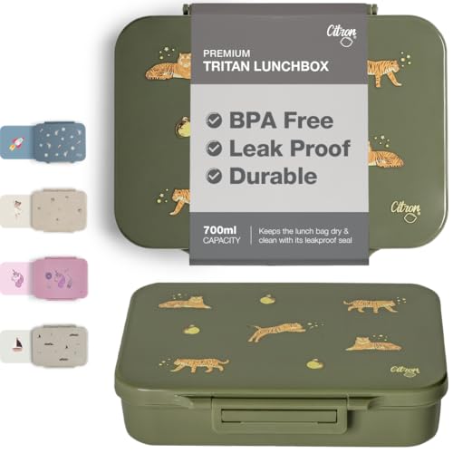 Citron - لانش بوكس تريتان مع 4 مساحات تخزين للأطفال | لانش بوكس مانع للتسرب وخالي من البيسفينول أ للأطفال - تصميم تايجر من سيترون