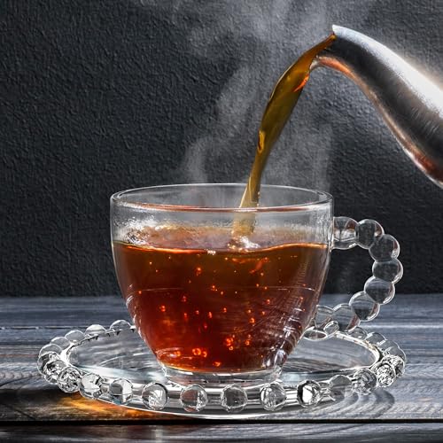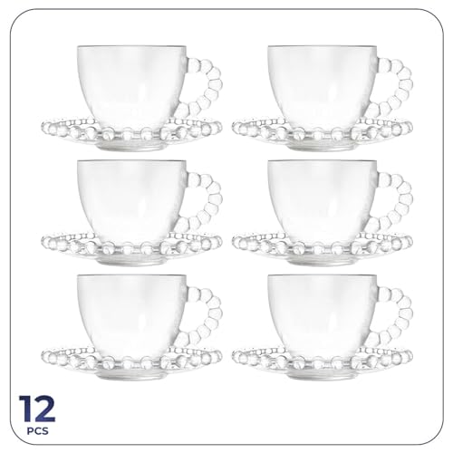 City Glass - طقم شاي زجاجي بابلي من سيتي جلاس 6 مجات - قواعد اكواب 22 سنتيلتر - شفاف 3S300477 12 قطعة