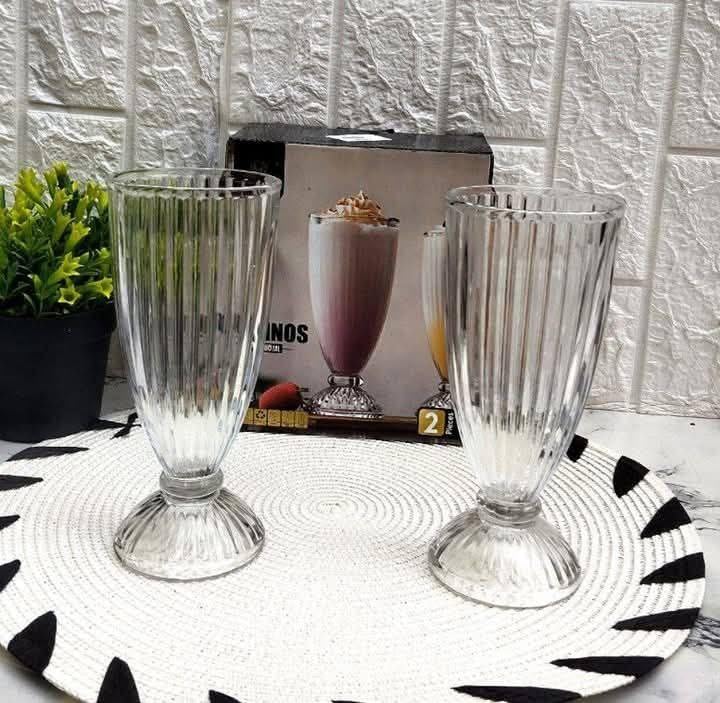 - طقم 2 أكواب شوب كبيرة للعصير والمياه والكوكتيل بجدار مخطط بخطوط مخفية