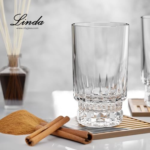 City Glass - طقم أكواب زجاجية من سيتي جلاس بقاعدة منقوشة، مصنوعة من الزجاج، سعة 160 مليلتر، شفافة اللون، ضد الانزلاق، عدد القطع: 6