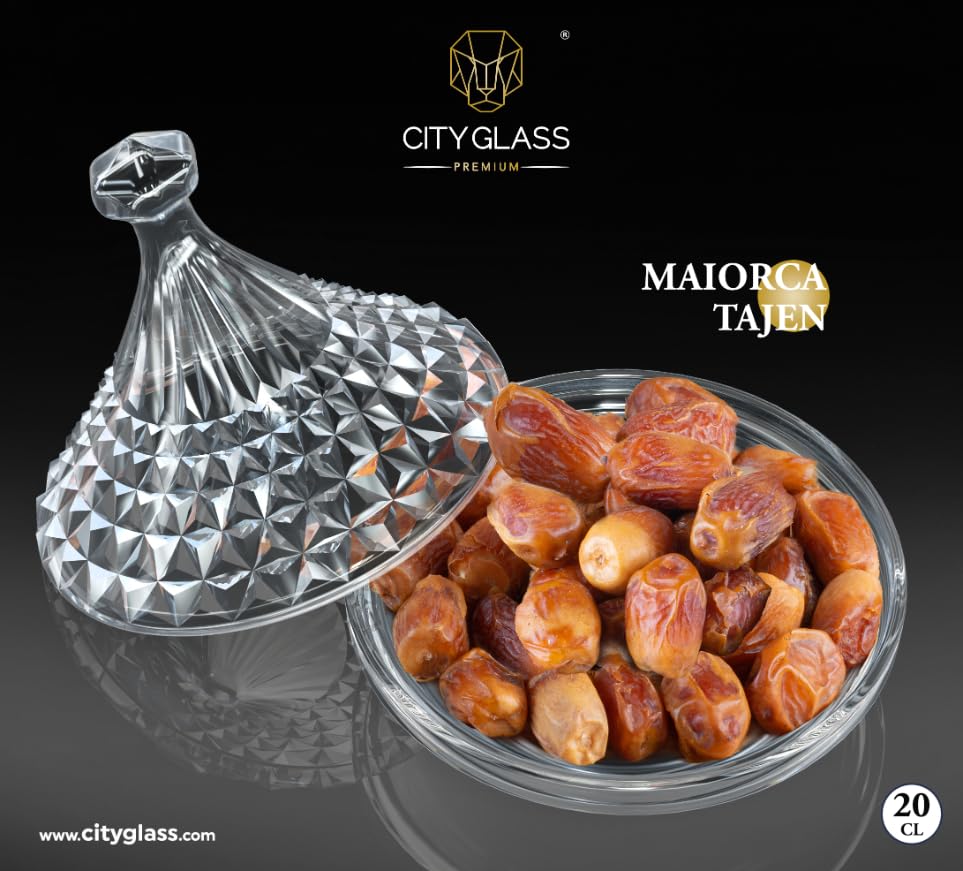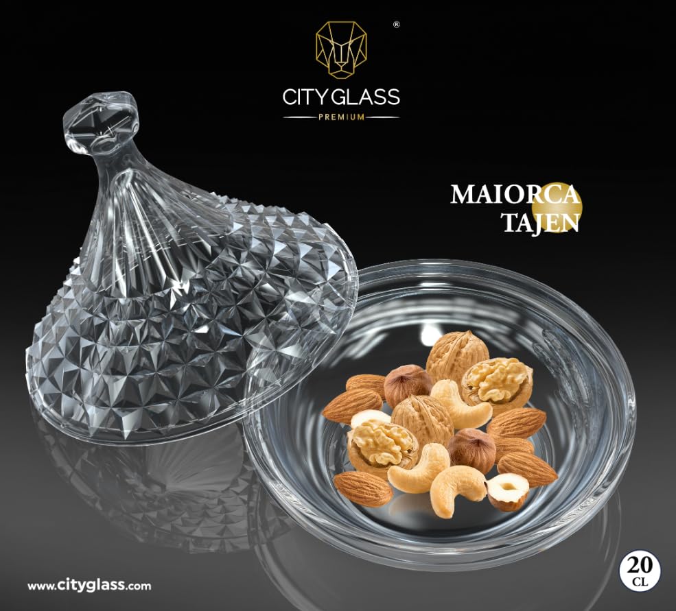 City Glass - طقم بولة زجاج شفاف مايوركا تاجين من سيتي جلاس مع غطاء، يحتوي على 1 بولة طاجن + 1 غطاء، بسعة 200 مل، تصميم أنيق لتقديم المقبلات والصلصات والأطباق الصغيرة، مصنوع من زجاج متين وأنيق