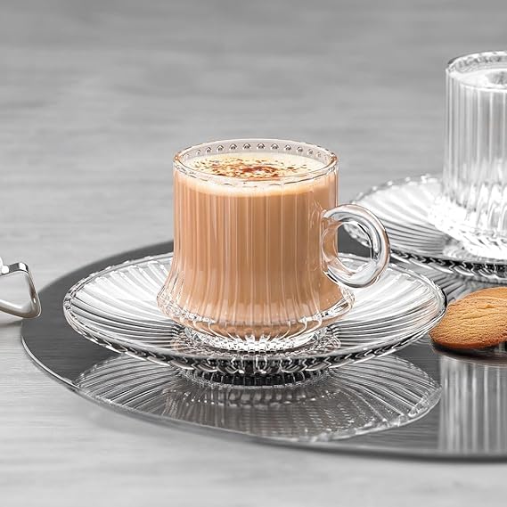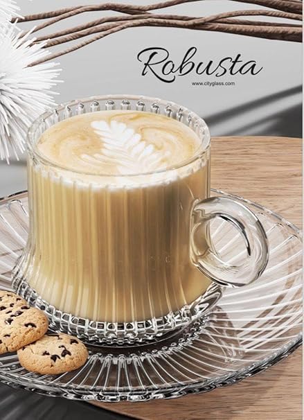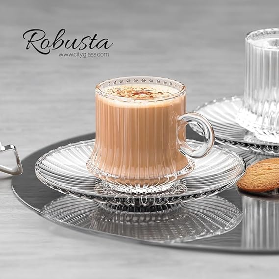 Generic - سيتي جلاس طقم مكون 12 قطعة 6 اكواب - خطوط تحضير 230 مل - شفاف زجاج (روبوستا)