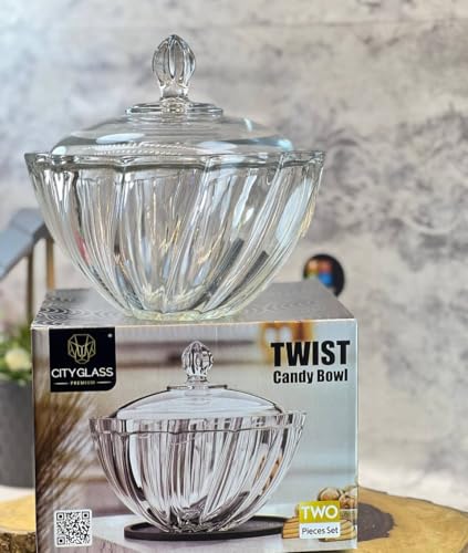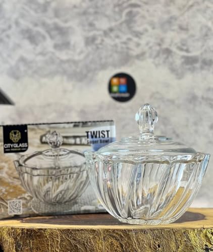 City Glass - سكرية تويست من سيتي جلاس | وعاء تخزين يأتي بغطاء مزخرف وزجاج كريستال شفاف ونقي | وعاء لتقديم وتخزين الحلوى والمكسرات والتوابل (سكرية)