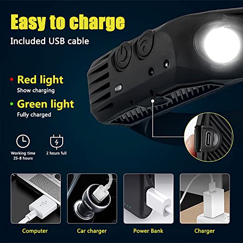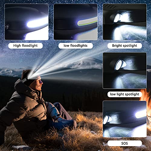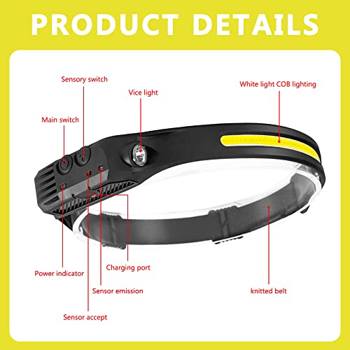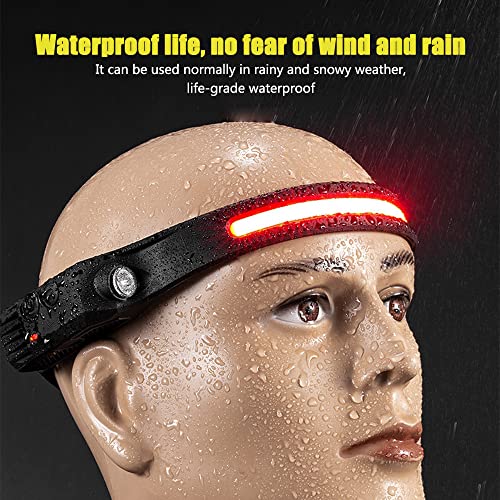 CJBIN - مصباح ليد للرأس بتقنية سي او بي 230 درجة، 500 لومين كشاف رأس USB قابل لإعادة الشحن بـ 5 أنماط إضاءة ومقاوم للماء تحكم ذكي بمستشعر مناسب للجري والتنزه وركوب الدراجات من سي جي بين