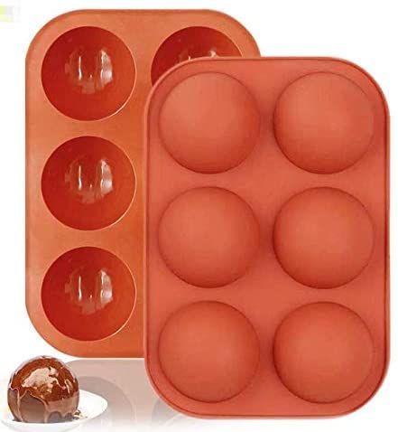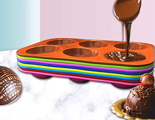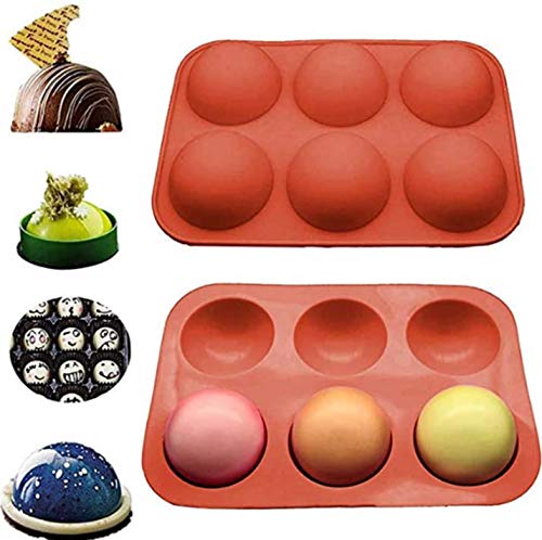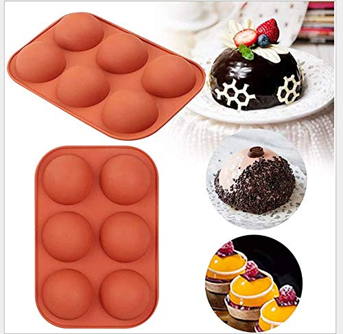 CJDWXM - قوالب خبز سيليكون نصف كروية بـ6 فتحات للكيك والشوكولاتة والبودنج والحلوى لون بريك ريد من قطعتين، من CJDWXM، أحمر