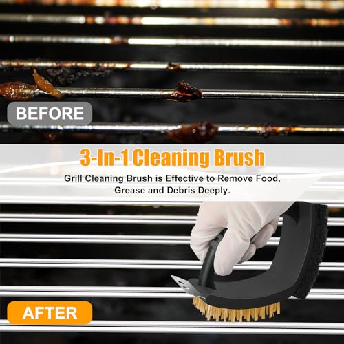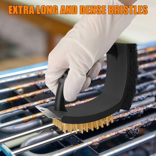 CJWDZ - فرشاة شواء (لتنظيف الشواء) فرشاة سلكية بزاوية قائمة 3 في 1 للشوايات الخارجية وشوايات الشواء وشبكات الشواء وأطباق الشواء (فرشاة اسلاك نحاسية للشواء)