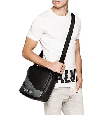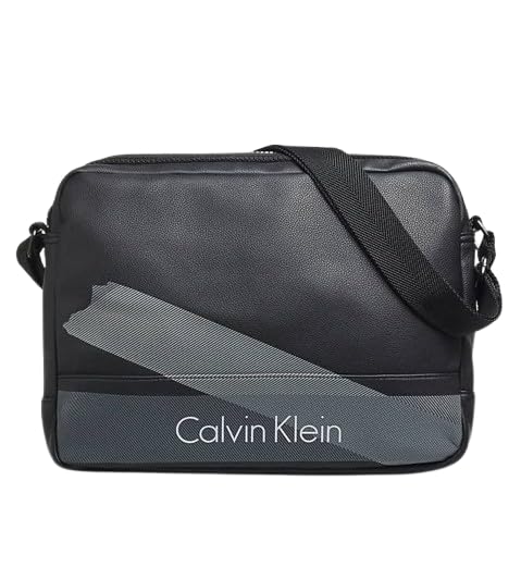 Generic - شنطة ماسنجر كبيرة من الجلد بلون اسود من سي كيه، الأبعاد: 27 × 37 × 11 سم