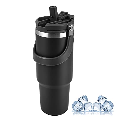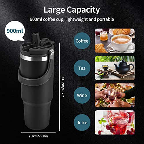 Ckbuity - كوب معزول بتفريغ الهواء من الفولاذ مقاوم للصدأ مع مقبض وغطاء بشفاطة، زجاجة مياه مانعة للتسرب للمشروبات الساخنة المثلجة والقهوة والشاي للسفر من سي كيه بيتي، 900 مل