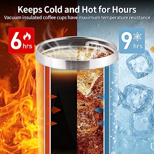 - كوب سفر معزول بجدار مزدوج: يتميز كوب القهوة المعزول بتفريغ الهواء بأقصى مقاومة لدرجة الحرارة. عزل مزدوج الجدران يحافظ على المشروبات الساخنة ساخنة لمدة 6 ساعات والمشروبات الباردة باردة لمدة 9 ساعات، اسكب القهوة الساخنة أو المثلجة في كوب السفر الخاص بك واشعر بالانتعاش طوال اليوم. يمكنك الاستمتاع بالقهوة والشاي والعصير بشكل لطيف للغاية.